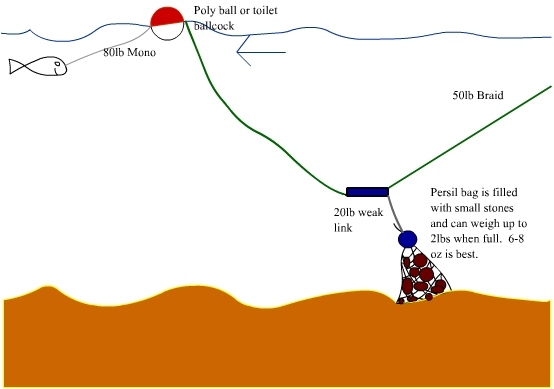 The Persil Tablet Bag Ian Wakeford Ever found something that you can't resist using even though it looks a bit daft. Well since those little detergent tablet bags were introduced a few years ago, I now always keep a stock it my rucksack, they are as invaluable as rubber bands. Now that's saying something. Firstly for Piking I have been using them as rubby dubby bags, I get old deadbaits and chop them up into small pieces. If you fill one of these Persil bags up with bits of fish, then it will create an oil slick to flatten the waves during a force eight gale. There are two ways of attaching the bag to your rig; I will try and explain the approaches I have used. Firstly, if you are fishing close in or do not need range, then you could completely do away with a lead weight. Just attach the loop of the bag to a clip on swivel instead of a lead. Assuming the fish is thawed out it will sink slowly, resting on any weed. Alternatively, for venues that require a little more distance or have a modest flow, then you will be better to attach a lead as usual, then enclose the lead within the bag, pulling the drawstring tight. This will require quite a strong rod to cast but also has the added benefit the draw string is not firmly fitted to the lead, in a snag it would slip and release the lead. I have not tried them for attracting eels, but I am sure that they would work, the only worry is that they will probably try and eat the bag. They are also great at catching crayfish, they get tangled up a treat in the netting!!! The other use that I have been impressed with is that of an adjustable weight that you can risk loosing. The biggest problem I have found is on fishing large baits for Catfish on rivers such as the Ebro in Spain. The river is so snaggy that your bottom lead could be lost every cast, and 6-8oz leads are not cheap, even in Spain. What I have been fishing quite successfully last year is a winch rig set-up, where you at first cast out the bag of stones, keeping the trace swivel wrapped around your foot, or attaching some lighter line to it, casting the whole rig out and winding the trace swivel back. Either way you end up with a bag of stones about 20 yards out, with the trace swivel on dry land. You then attach the livebait and slowly retrieve line until the bait is wound out completely to the bag of stones. In reality there will be an angle of about 45 degrees between the stones and bait. In strong currents and snaggy bottoms what tends to happen is that the whole rig tends to slowly creep down river. This would happen with a lead weight as well, until the rig meets a snag, the rig then holds fast. When a catfish takes the bait it will probably hook itself against the 20lb weak link and then proceed to snap it. Leaving you with a free running rig line all the way to the fish. I can confirm this approach works, catching my personal best by this method. It makes a change to the bottle rig anyway and means that it can be fished on your own without the need for a boat. However range is limited to the distance you can throw the stones or cast them. So not all swims are suitable. Lastly, still working on the above principle, these bags are great when filled with gravel as ballast. I have fished swims where I have been unable to get tent pegs into the ground, so a dozen of so of these bags filled with gravel is great for staking out your bivvy round the edges. And at the end of the day, you empty them out. No heavy weights to carry. Ever tried taking 20lb of lead on a plane? I have, they want to know why you coat pockets are full of this stuff. Very hard to explain and very tiring to carry about when your baggage allowance is already used up with other tackle and a change of underpants. |